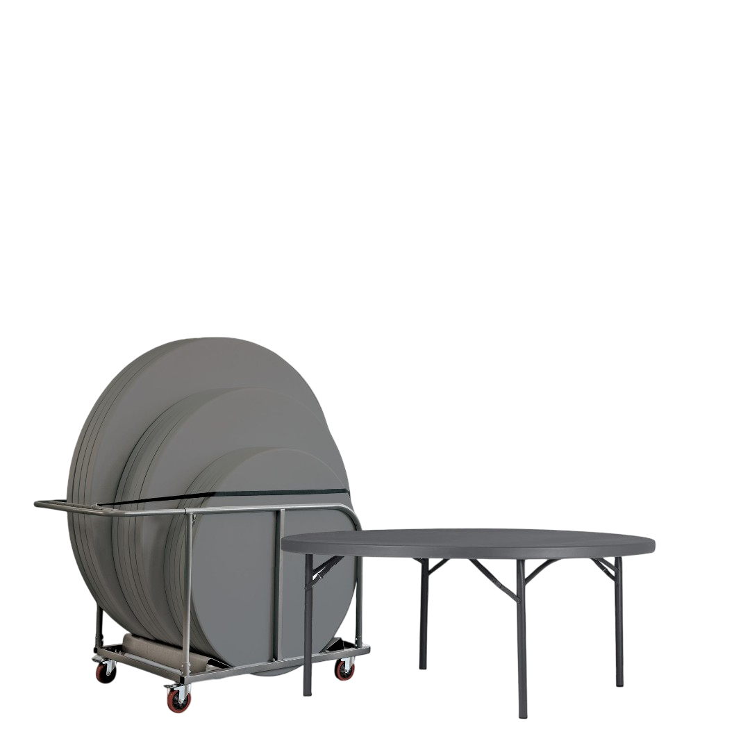Få en profesjonell og romslig bordløsning – bestill denne sampakken med 12 Ø180 bord og vogn i dag.