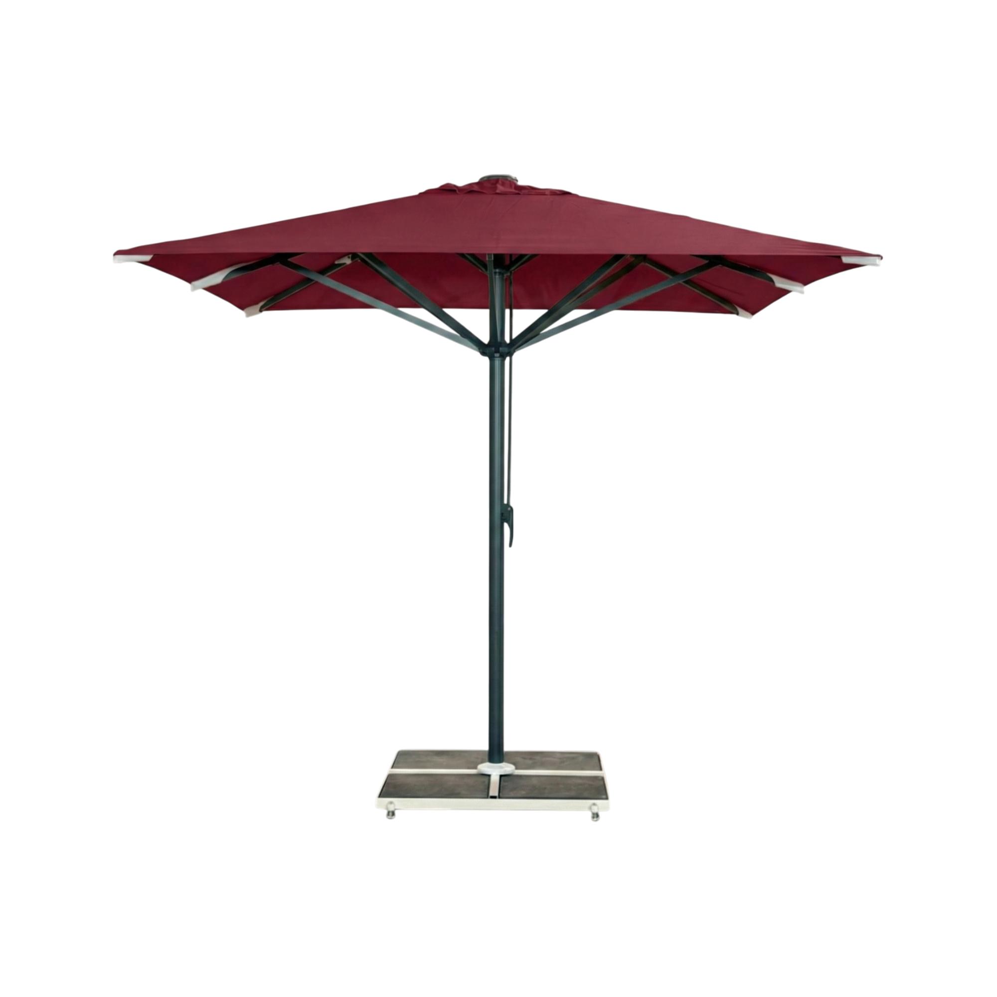 Kjempeparasoll 3x3m komplett uten kantbånd – Grå stativ – Grå rød