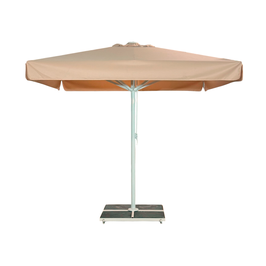 Denne store parasollen kombinerer funksjonalitet og stil og beskytter effektivt mot solens str E5ler. Polyesterduken er v E6rbestandig og lett E5 rengj F8re, noe som gj F8r parasollen spesielt egnet for profesjonell bruk. Den er perfekt for store utend F8rsomr E5der hvor b E5de skygge og komfort er n F8dvendig.