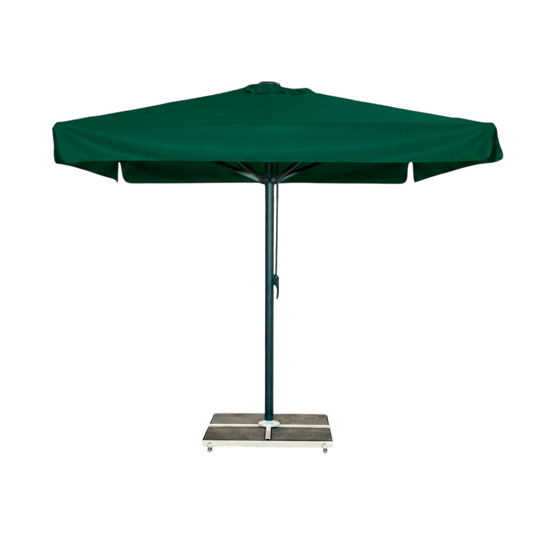 Vår kjempeparasol på 5×5 meter er det perfekte valg for store uteområder der både funksjonalitet og estetikk er avgjørende. Med sin slitesterke 280 g/m² polyesterduk og kraftige hvitlakkerte aluminiumsstang, kombinerer denne parasollen holdbarhet og eleganse. Den passer til markeder, caféer, restauranter, hoteller og andre profesjonelle miljøer hvor gjestens komfort prioriteres.