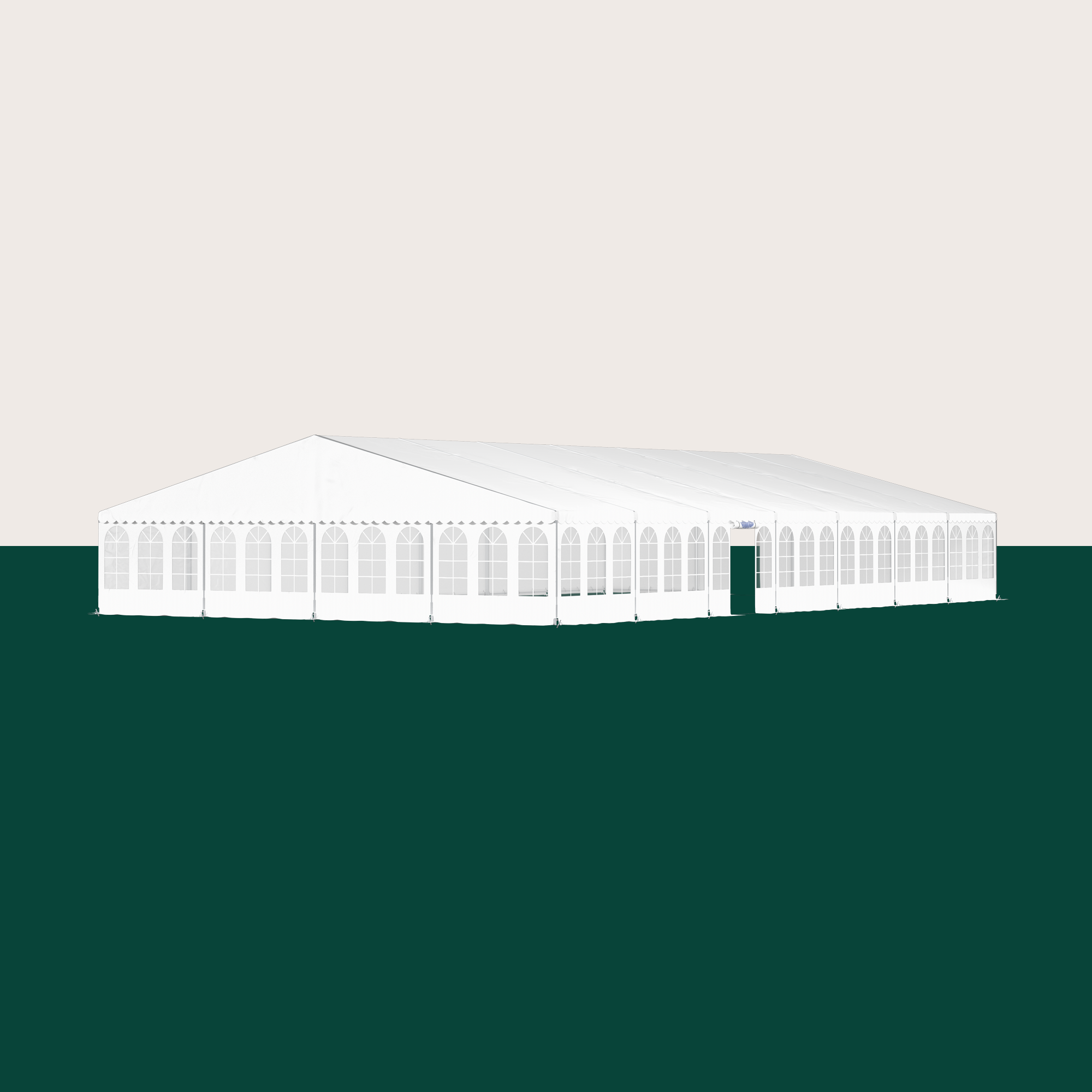 12×21 meter komplett Pro Event Telt leveres med bjelker, fittings, gummistrikker, bolter og split samt tak- og sideduk. Jordspyd kan kjøpes ekstra avhengig av ønsket vindlast.