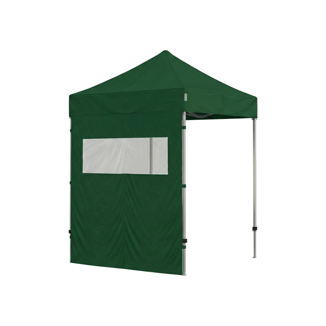 Lukket side med vindu laget av gjennomsiktig, kraftig plast. Siden gir ingen tilgang til Quick-up teltet.