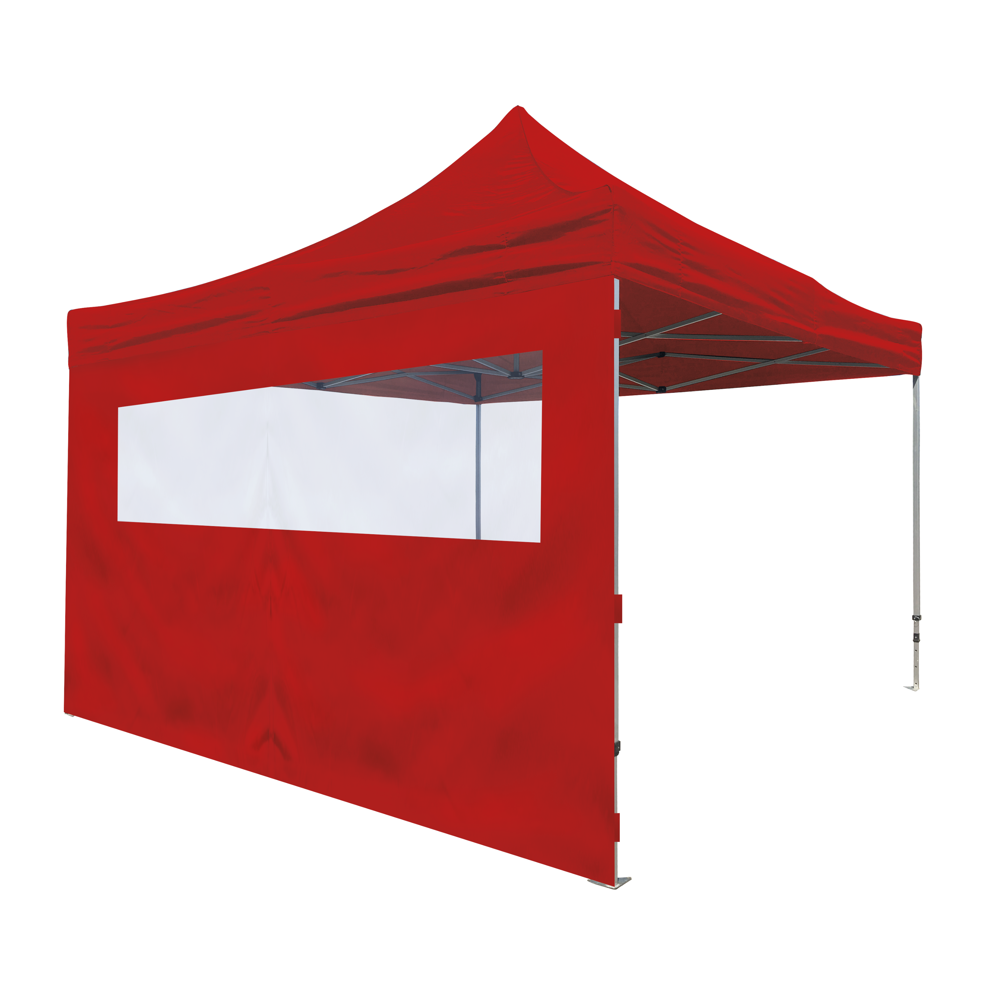 Lukket side med vindu laget av gjennomsiktig, kraftig plast. Siden gir ingen adgang til Quick-up teltet.